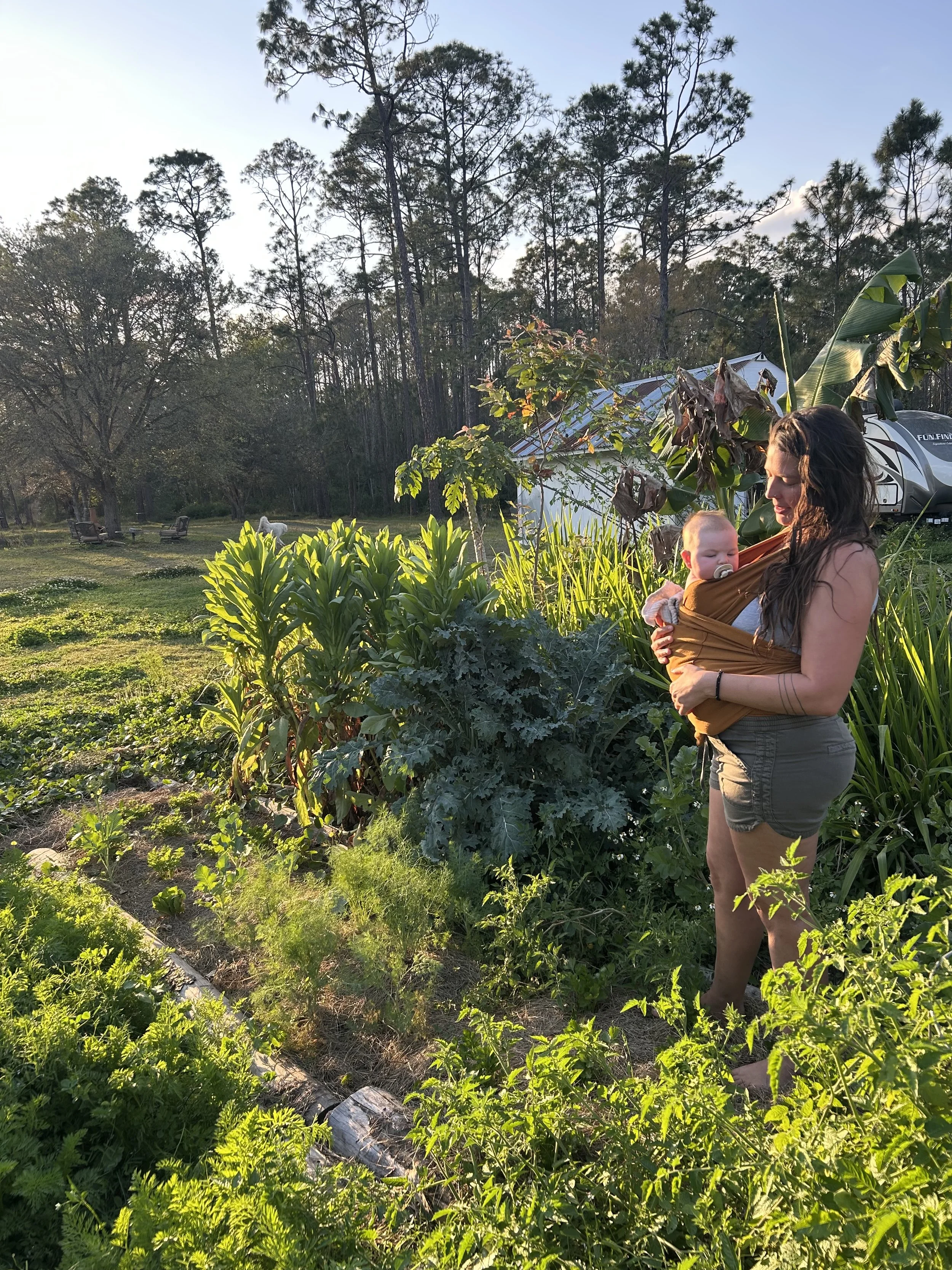 That season cracked me open. It set me on the path that eventually led me here, to central Florida, where I now live with my partner Cory, our children, and the thriving food forest we’re cultivating on our 15-acre farm.